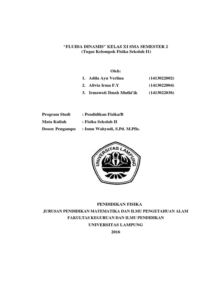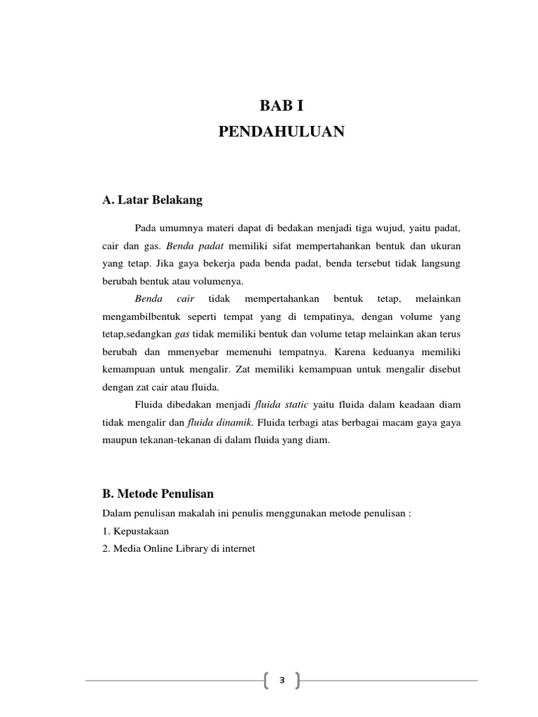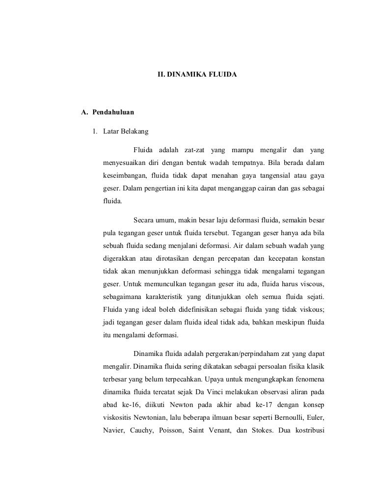 Pendahuluan Pada umumnya materi dapat di bedakan menjadi tiga wujud yaitu padat cair dan gas. Fluida dinamis adalah fluida bisa berupa zat cair gas yang bergerak. Supaya File ini tidak hilang dan bermanfaat buat teman-teman yang mungkin senasib maka saya menyimpannya pada blog wordpress ini.