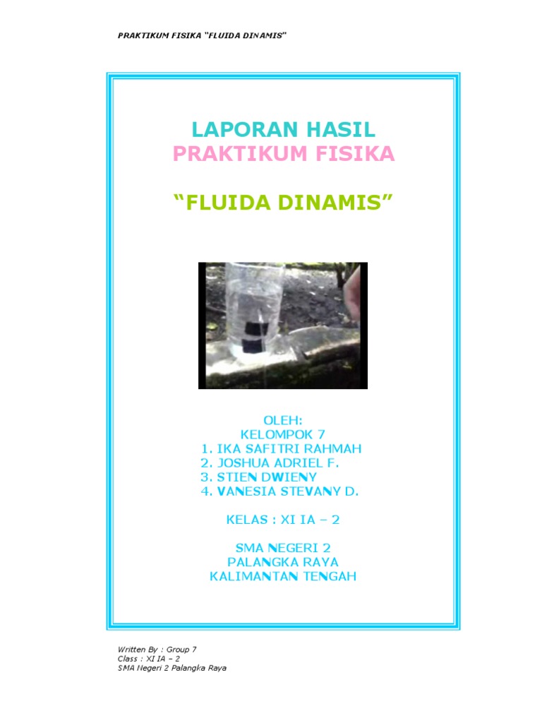 Laporan Hasil Praktikum Fisika Fluida Dinamis Kelompok 7 Kelas Xi Ia 2 Pdf